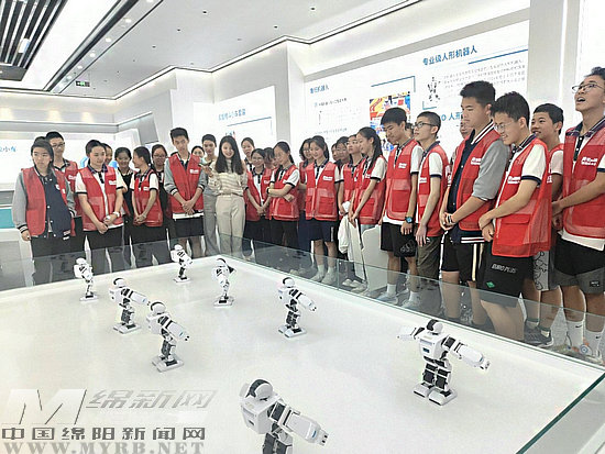 師生們?cè)诰d陽科技城新區(qū)機(jī)器人創(chuàng)新館參觀