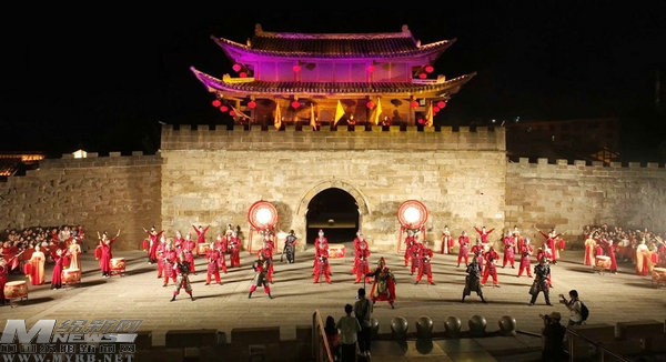 潼川古城實(shí)景演繹大秀(記者李春梅攝)