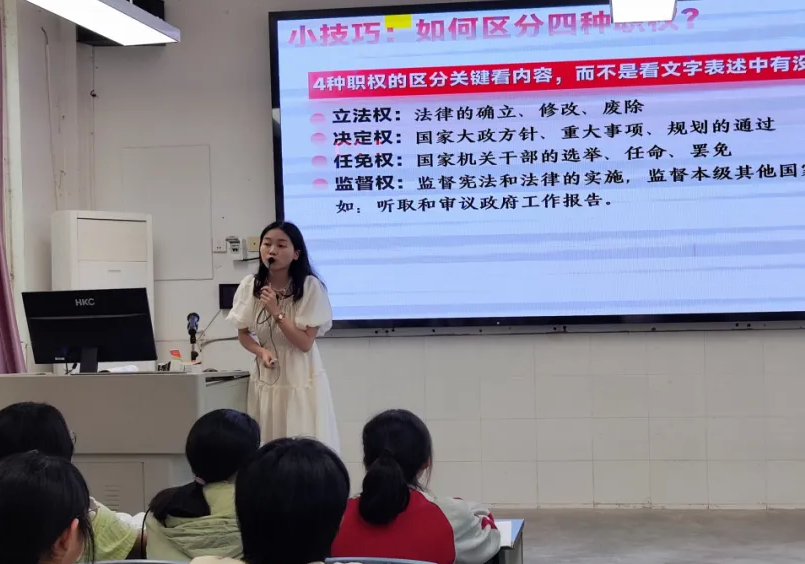 綿陽市實驗中學青年教師江語薇執(zhí)教初中道德與法治八下《國家權力機關》新課教學。課堂上,江老師將“立足核心素養(yǎng)、聚焦課堂實踐”這一理念貫穿始終。她以2024年“兩會”引入新課,通過“議題式教學”展開課堂。通過對時政材料——2024年全國人民代表大會的分析,讓學生明確權力機關的性質、構成、地位及職權。整個教學過程充分發(fā)揮了教師的主導作用,通過豐富的材料,生動的視頻,調動了學生的主動性和積極性。巧妙的設計得到在場聽課老師的一致好評。