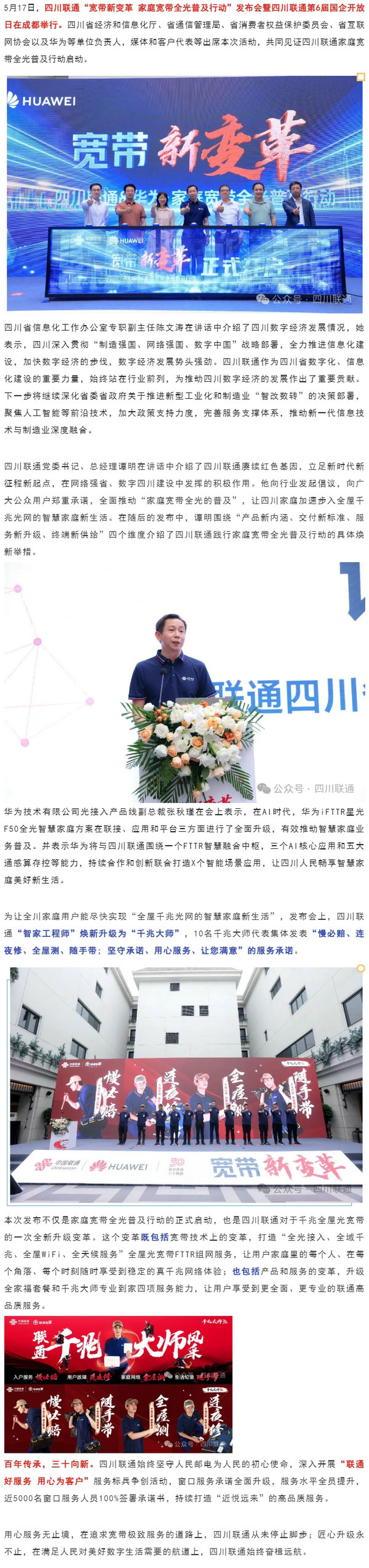 517世界電信日|四川聯(lián)通重磅發(fā)布家庭寬帶全光普及行動