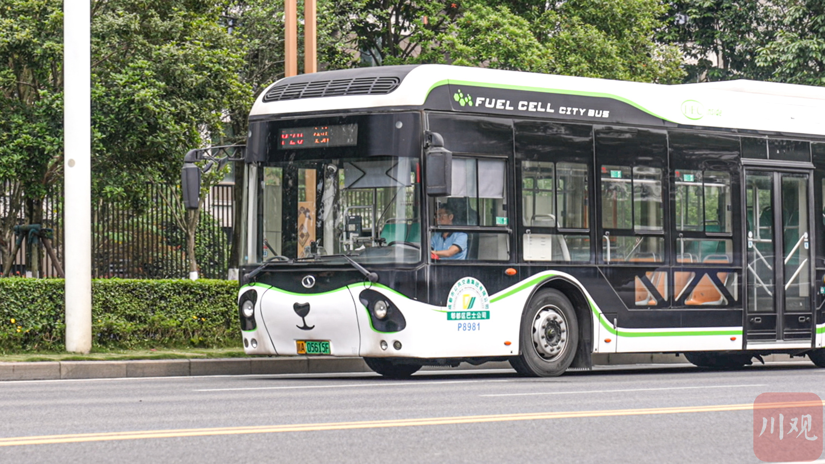 5月17日,一輛長約10米的公交車從成都市郫都區(qū)清江公交站駛出,沿著P20路行駛路線前行。炎炎烈日下,車輛運行平穩(wěn),除了輕微的空調(diào)運行聲,沒有其他雜音。若非車身上的“氫動力”標志,看不出該車和傳統(tǒng)能源公交車或鋰電公交車有何區(qū)別。