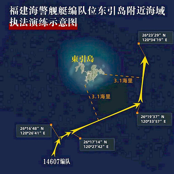中國(guó)海警局新聞發(fā)言人甘羽表示,5月23日,福建海警組織艦艇編隊(duì)位烏丘嶼、東引島附近海域開展綜合執(zhí)法演練,檢驗(yàn)聯(lián)合巡航、快速反應(yīng)及應(yīng)急處置能力。