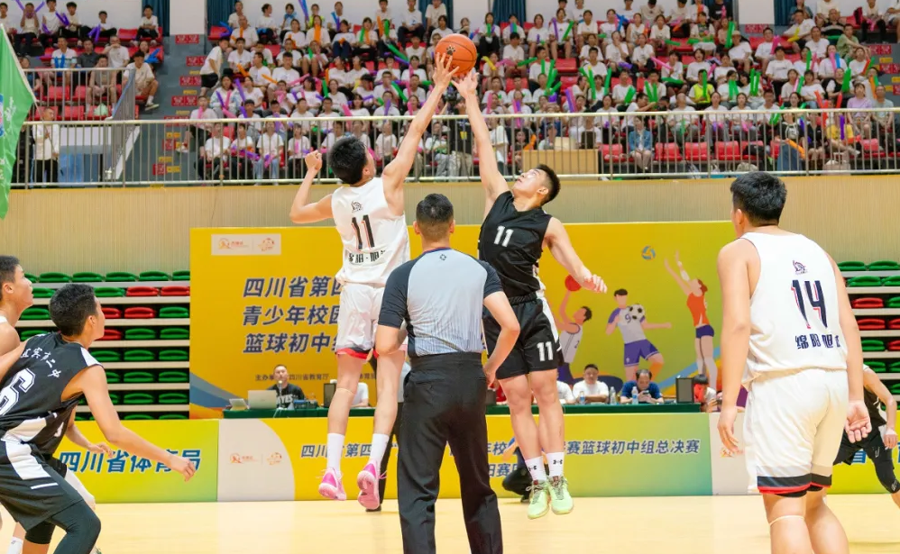 5月19日晚,由四川省教育廳、四川省體育局、共青團(tuán)四川省委聯(lián)合主辦的四川省第四屆“貢嘎杯”青少年校園籃球聯(lián)賽初中男子組決賽第二場比賽在綿陽市涪城區(qū)體育館舉行。綿陽市實(shí)驗(yàn)中學(xué)(綿陽七中)籃球隊(duì)作為東道主,迎戰(zhàn)宜賓二中籃球隊(duì)。