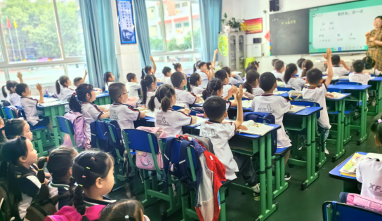 甘開瑛老師的語文課堂生動有趣,孩子們在朗朗讀書聲中搖頭晃腦,看見哥哥姐姐們積極舉手答問,也躍躍欲試。在這里,孩子們也看到了哥哥姐姐們?nèi)绾握J真聽講,感受到了小學(xué)生課堂的嚴謹與活潑。孩子們對小學(xué)課堂有了新的了解。