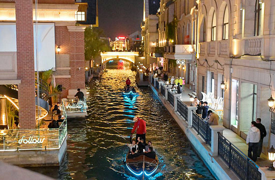 5月16日,游客乘船在大連的東方威尼斯水城游覽。新華社記者 石楓 攝