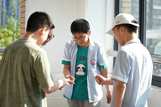 5月24日,周奕唯(右二)在課間和同學(xué)玩耍。