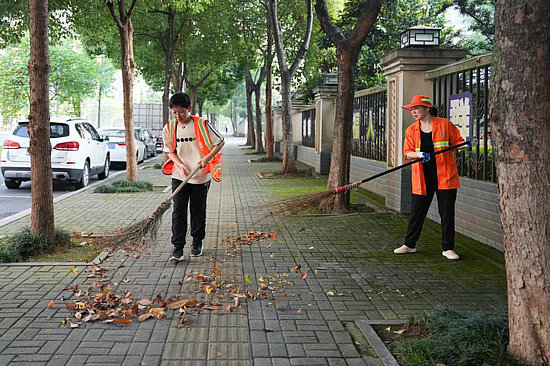周末的清晨,在湖南省常德市武陵區(qū)芙蓉路上,有一位少年陪著母親清掃路面。兩人身著橙色馬甲的身影成為芙蓉路一道特殊的風(fēng)景。