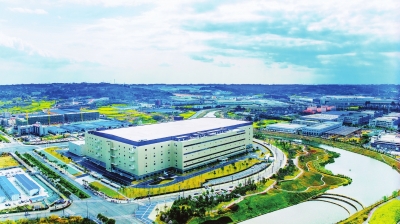 圍繞新型顯示等主導(dǎo)產(chǎn)業(yè),綿陽高新區(qū)(科技城直管區(qū))不斷推動(dòng)產(chǎn)業(yè)鏈延鏈補(bǔ)鏈強(qiáng)鏈。圖為京東方新型顯示產(chǎn)業(yè)園。(劉軍 攝)