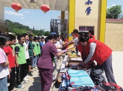 當日,青年志愿者們駕車奔赴距離綿陽城區(qū)100公里的梓潼縣大新小學。他們頂著炎炎烈日,將捐贈物資從車上卸下,并整齊地擺放在校門口的石階上。學生們向市兒童福利院的志愿者們致以少先隊禮,以表達他們內(nèi)心的感激之情。志愿者們還了解山區(qū)兒童的學習生活情況,并陪伴孩子們一同嬉戲玩耍。