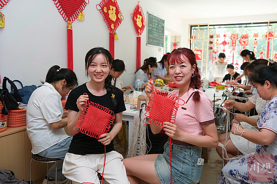 巴中市巴州區(qū)的“巾幗工坊”內(nèi),當(dāng)?shù)貗D女正在接受技能培訓(xùn)。