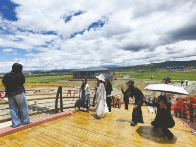 5月27日,由400余名在綿高校師生和市民組成的“萬(wàn)人上紅原”首發(fā)團(tuán)前往紅原。在紅原期間,游客先后到阿拉巴扎唐卡培訓(xùn)中心、紅原易地育人學(xué)校等地感受當(dāng)?shù)匾蕴瓶?、民間彈唱、民間舞蹈等為代表的特色非遺,到雅克鹿之谷景區(qū)、月亮灣景區(qū)體驗(yàn)大草原風(fēng)光,在紅原賽馬場(chǎng)感受中國(guó)“馬術(shù)之鄉(xiāng)”的激情,到日干喬大沼澤、紅軍過(guò)草地紀(jì)念碑等地,聆聽(tīng)紅軍長(zhǎng)征的故事,感受偉大的紅軍長(zhǎng)征精神。