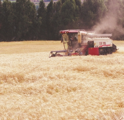 一壟壟成熟的小麥被卷進(jìn)機(jī)器,大片沉甸甸的麥穗被分割脫粒,不一會(huì)兒,金黃的麥粒順著管道落入車廂內(nèi)。看著豐收的麥粒逐漸堆成“小山”,橋梁村黨總支書記李明偉臉上洋溢著豐收的喜悅。“今年村集體共種植小麥200余畝,畝產(chǎn)達(dá)400公斤,預(yù)計(jì)實(shí)現(xiàn)總產(chǎn)值4.3萬余元!”