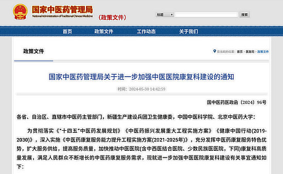 國家中醫(yī)藥管理局官網(wǎng)截圖