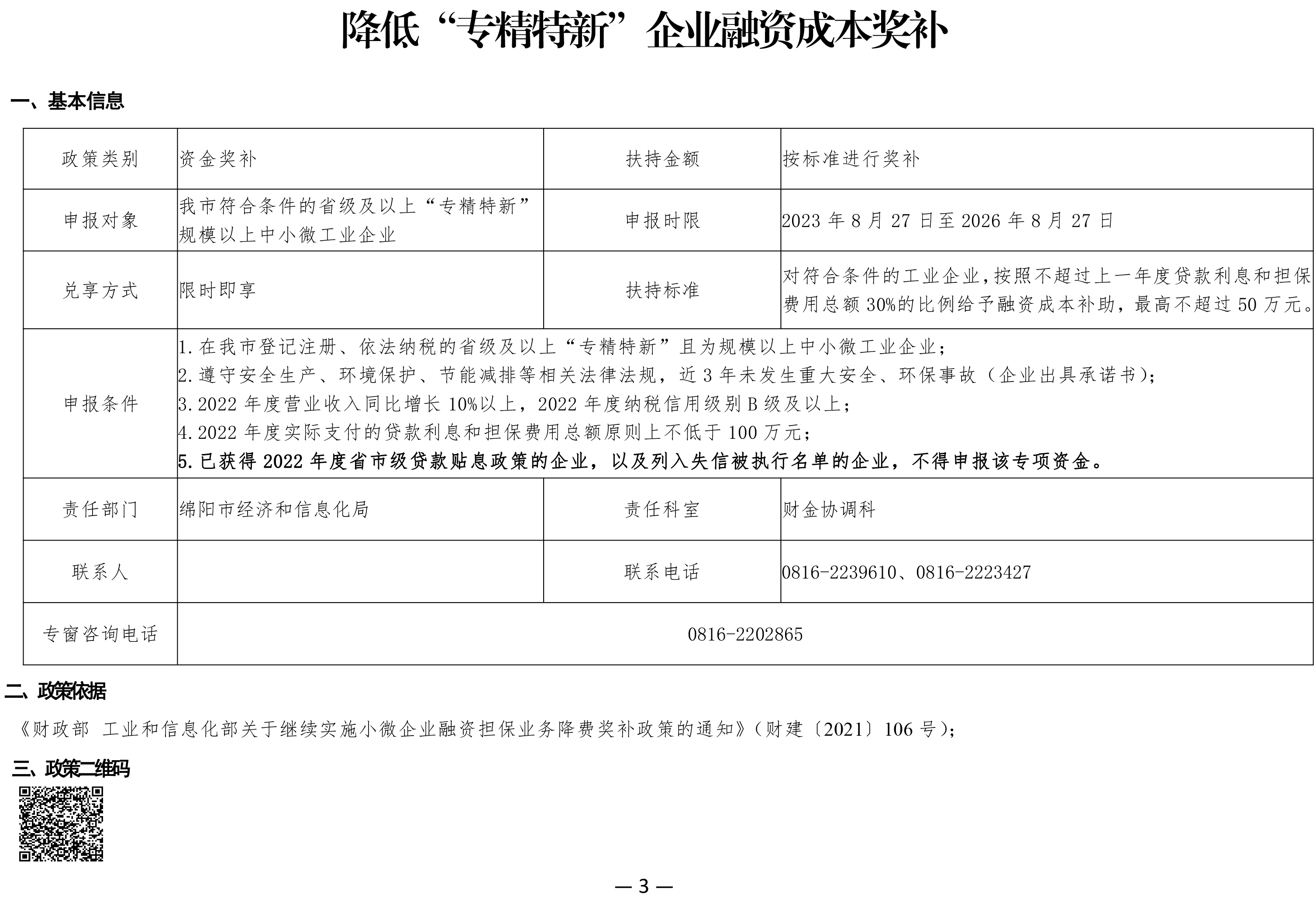 2024年綿陽市級惠企政策事項(第一批)“即申即享+限時即享”辦事指南