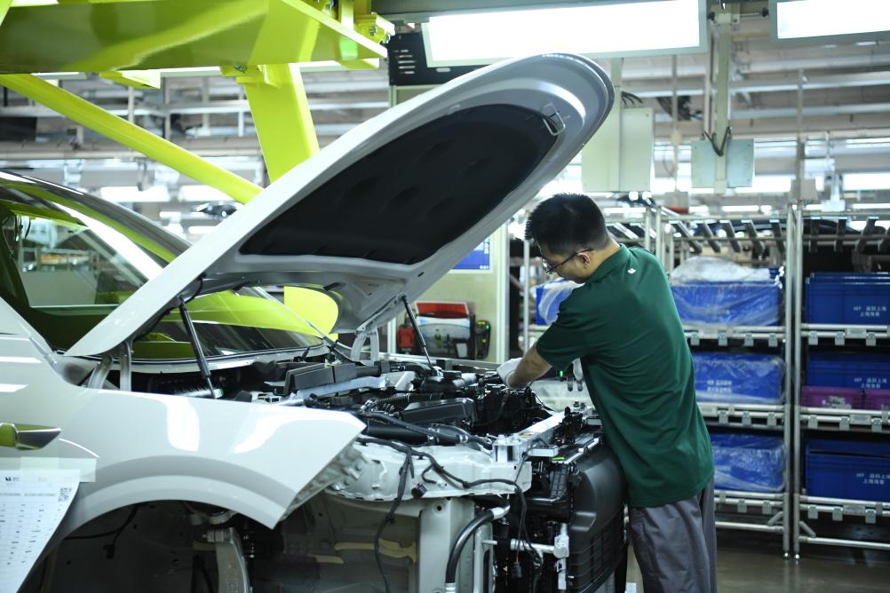 5月31日,工作人員在江蘇常州理想汽車智能制造基地總裝車間工作。新華社記者 柳文惠 攝