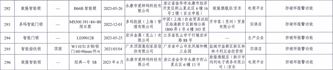 1、標(biāo)稱永康市愛紳瑪科技有限公司生產(chǎn)的致隆智能鎖,規(guī)格型號:B66B 智能鎖,不合格項目:防破壞報警功能。