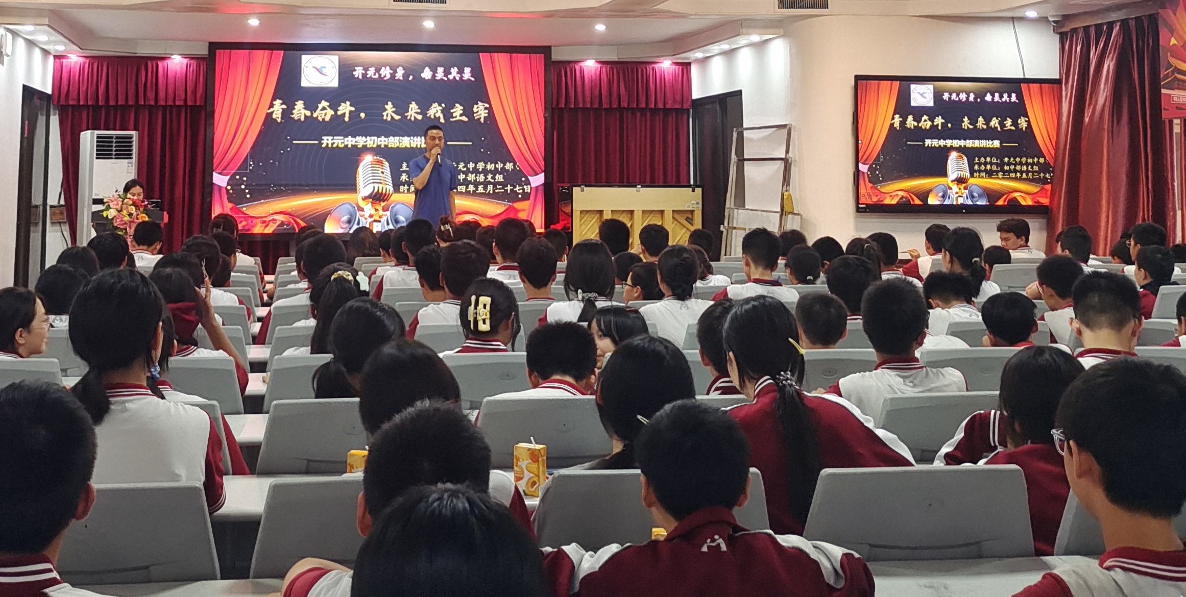 5月28日,綿陽市開元中學初中部在德勤樓四樓會議室舉行了以“青春奮斗,未來我主宰”為主題的演講比賽。本次活動旨在激勵同學們積極面對挑戰(zhàn),勇敢追求夢想,通過不懈奮斗實現(xiàn)自己的夢想。演講比賽由初中部德育主任呂勇主持,初中部教師李巧、蔡菲、王華、馮小彥、楊膠膠擔任評委。