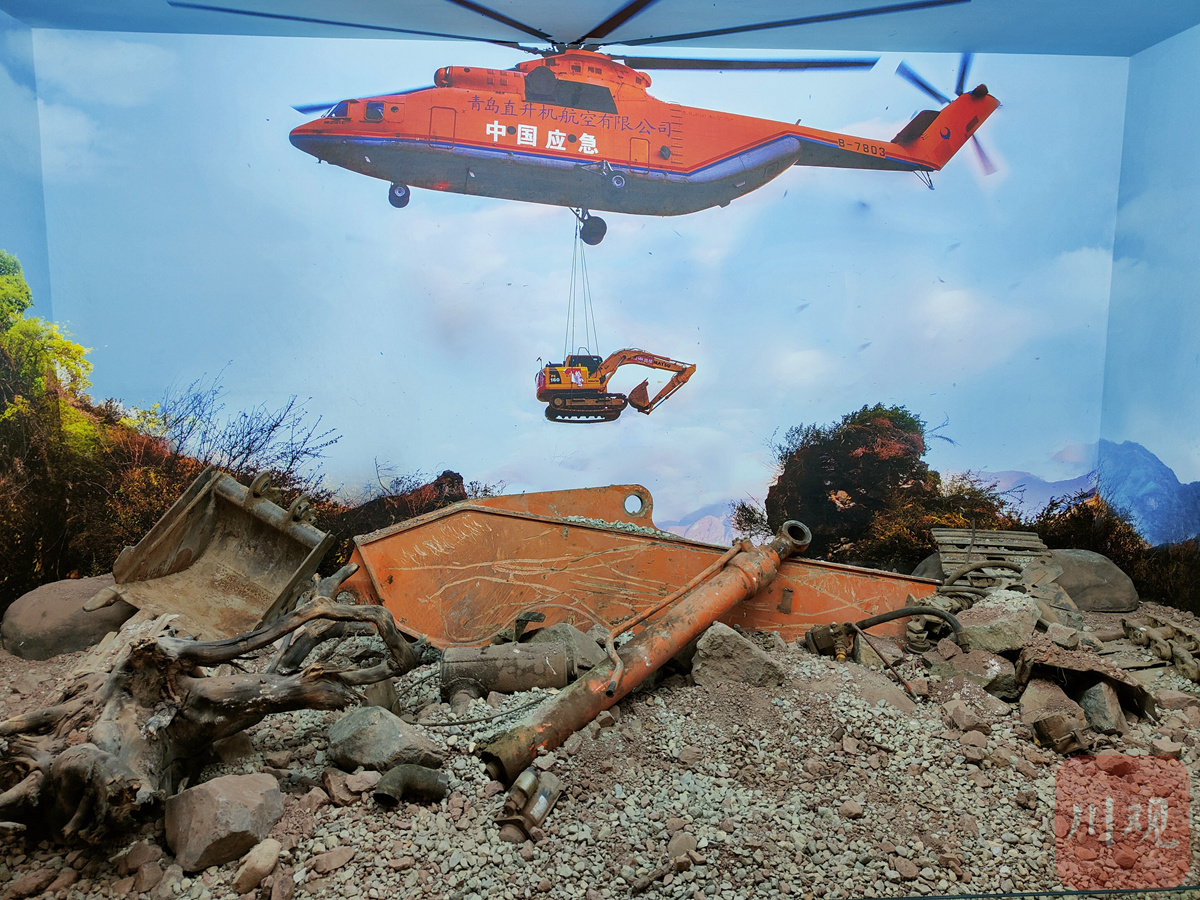 涼山州脫貧攻堅展覽內(nèi)阿布洛哈村通村公路建設(shè)場景還原。