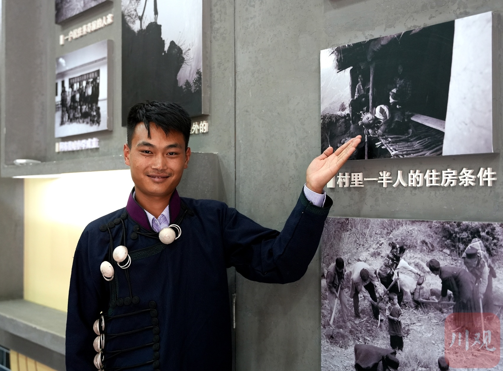 入村后,記者先來到四川交通扶貧陳列館,和記者同行的,是23歲的村會計阿達(dá)牛色。“你看,這是我小時候的照片。”在陳列館的第一篇章“被大山隔絕的彝村”,阿達(dá)牛色停下腳步,在一張黑白照片前為記者介紹起來。