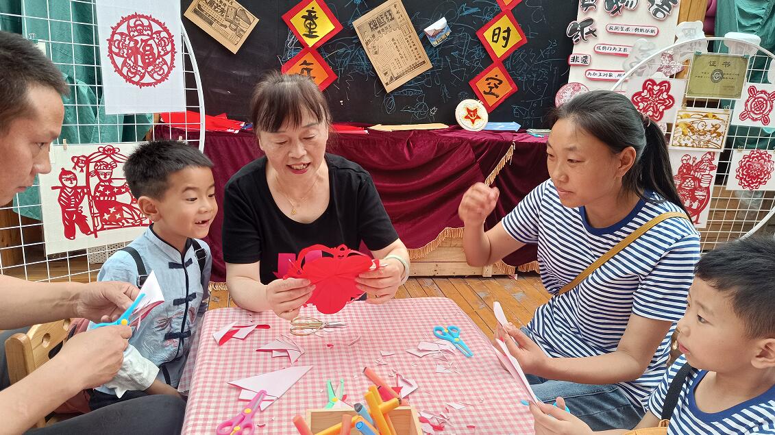 該園結(jié)合園所課程,將每年六月設定為游戲月,開展系列豐富多彩活動,本月活動之一——“印象北街·年代秀”主題活動,設置了年代秀、暢游北街、非遺課堂等三個板塊。年代秀場上,家長和孩子身著復古服裝從T臺緩緩走來,向我們展示著不同年代的風采。暢游北街項目豐富多彩??梢宰灾剖止ぷ髌?,如制作風車、發(fā)夾等,既培養(yǎng)孩子的動手能力,讓家長和孩子一起體驗生活,增進親子感情,共享成長時光。可以玩?zhèn)鹘y(tǒng)游戲,讓家長回到“挑棍兒”“打盒子”“打彈珠”“踢毽子”的童年,讓孩子體驗爸爸媽媽小時候的游戲??梢云穱L美味的“冰糖葫蘆”“夏日果汁”“水果繽紛”,大家一起感受六月獨有的甜蜜。最吸引家長和孩子的是“非遺課堂”,“剪紙”是用剪刀在紙上剪刻花紋,裝點生活的民間藝術(shù),訓練了孩子們的精細動作,提高了他們欣賞美創(chuàng)造美的能力。最讓孩子駐足流連的是糖畫的制作過程,只見糖漿熔化后,在石板上飛快揮灑、繪制,瞬間凝固成形,綻放出別樣的光彩。