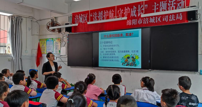 在“六一”兒童節(jié)到來(lái)之際,涪城區(qū)司法局聯(lián)合綿陽(yáng)市一元愛(ài)心協(xié)會(huì)、四川蜀仁律師事務(wù)所在綿陽(yáng)市城郊小學(xué)開(kāi)展了以“法援護(hù)航,守護(hù)成長(zhǎng)”為主題的法治課活動(dòng)。
