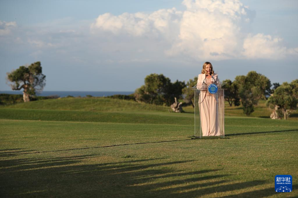 6月13日,在意大利南部普利亞大區(qū)法薩諾市,意大利總理梅洛尼向媒體介紹七國(guó)集團(tuán)峰會(huì)情況。新華社記者 李京 攝