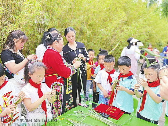 孩子們跟著非遺傳承人學(xué)習(xí)草編