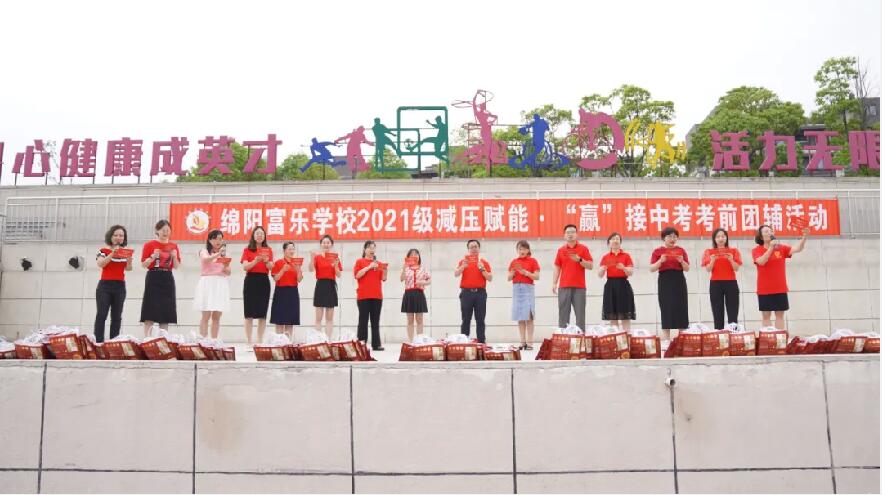 6月6日,綿陽富樂學(xué)校在操場(chǎng)上集會(huì),開展了以“解壓賦能,‘贏’接中考”為主題的2024年中考考前團(tuán)輔活動(dòng),所有科任老師,以教研組為單位,或朗誦、或舞蹈,或歌曲、或小品,花式百出,愛意滿滿,為同學(xué)們寄寓意,送祝福,幫助同學(xué)們卸下包袱,舒緩壓力,更好的前行。解壓活動(dòng)由李磊老師、劉悅老師主持。