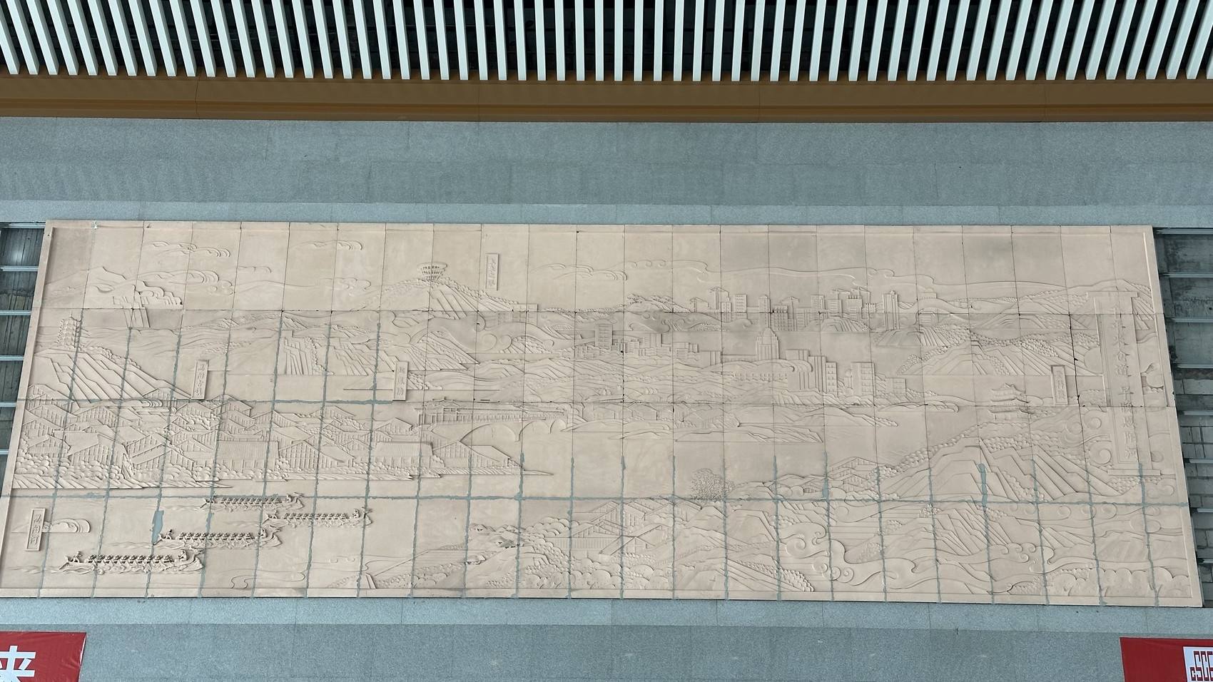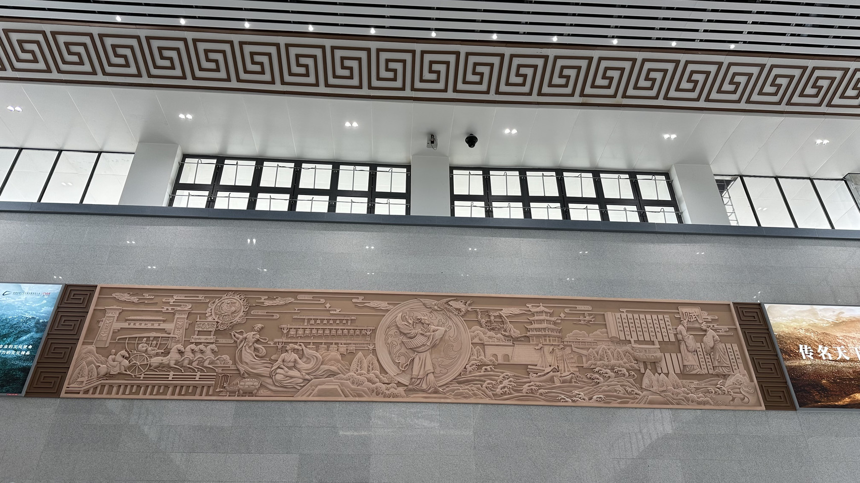 巴中西站“千年米倉道 早晚恩陽河”的主題壁畫。高杲 攝