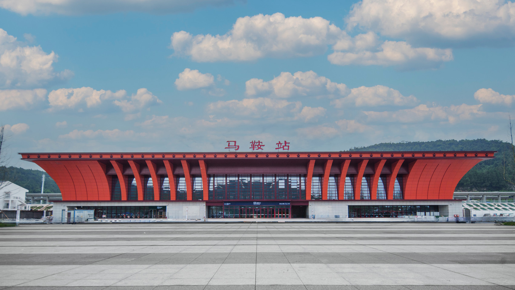 站房總建筑面積7000平方米,設(shè)2臺4線,年旅客發(fā)送量近期100萬人,遠期190萬人。站房外形以“德耀中華,光輝馬鞍”立意,細節(jié)處融入五角星等紅色元素,以現(xiàn)代的建構(gòu)表達,體現(xiàn)馬鞍作為朱德故里的城市特征和作為革命老區(qū)的獨特魅力。