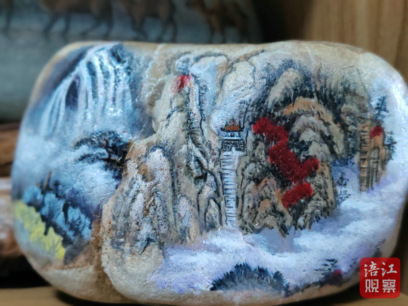 她根據(jù)石頭的形態(tài)、色澤和紋理,一點(diǎn)點(diǎn)繪出自己腦海中的畫面。既保留了石頭原有的自然美感,又賦予其新的生命光彩。每一筆每一畫都充滿了藝術(shù)魅力,讓人領(lǐng)略到石畫的獨(dú)特之美……