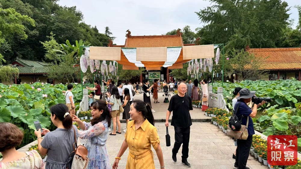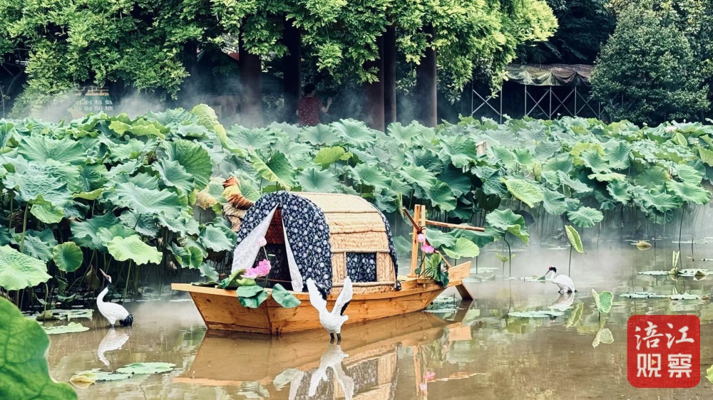 環(huán)湖線更是串聯(lián)了“畫中游”“剪荷橋”“晚回舟”“翰墨香”“半遮面”“戴月歸”等與荷景相得益彰的主題造景,展區(qū)內風鈴清脆、云霧繚繞,輔以數(shù)個互動框景,讓市民游客在接天蓮葉中一秒入畫,留下夏天的美好回憶。