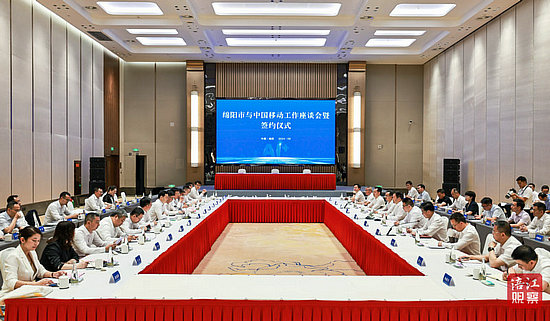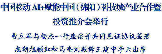 綿陽新聞網訊 6月20日,中國移動AI+賦能中國(綿陽)科技城產業(yè)合作暨投資推介會舉行。會前,省委常委、市委書記曹立軍與中國移動集團董事長楊杰一行座談,并共同見證協(xié)議簽署。