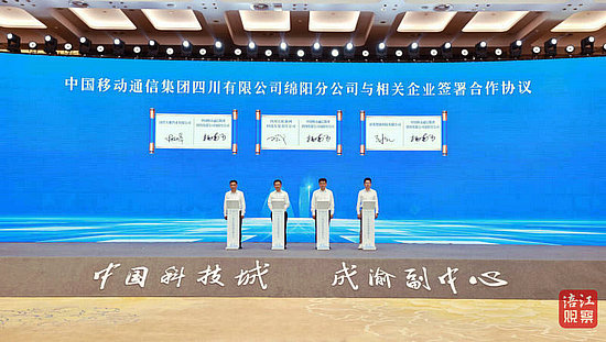 推介會上,曹立軍、惠朝旭、馬奎致辭,副市長鄧輝作投資推介,中國移動、華為、中興通訊、烽火通信、上海威固信息等企業(yè)負責人作主題演講或發(fā)言?,F場舉行集中簽約儀式,綿陽市有關方面分別與中國移動及其合作企業(yè)簽署戰(zhàn)略合作協(xié)議以及商業(yè)航天智能制造、西部智算中心、智能消費電子產品生產基地等項目投資協(xié)議。在綿期間,與會嘉賓還前往長虹智能制造產業(yè)園、綿陽惠科顯示科技有限公司、中國(綿陽)科技城創(chuàng)新館參觀考察。