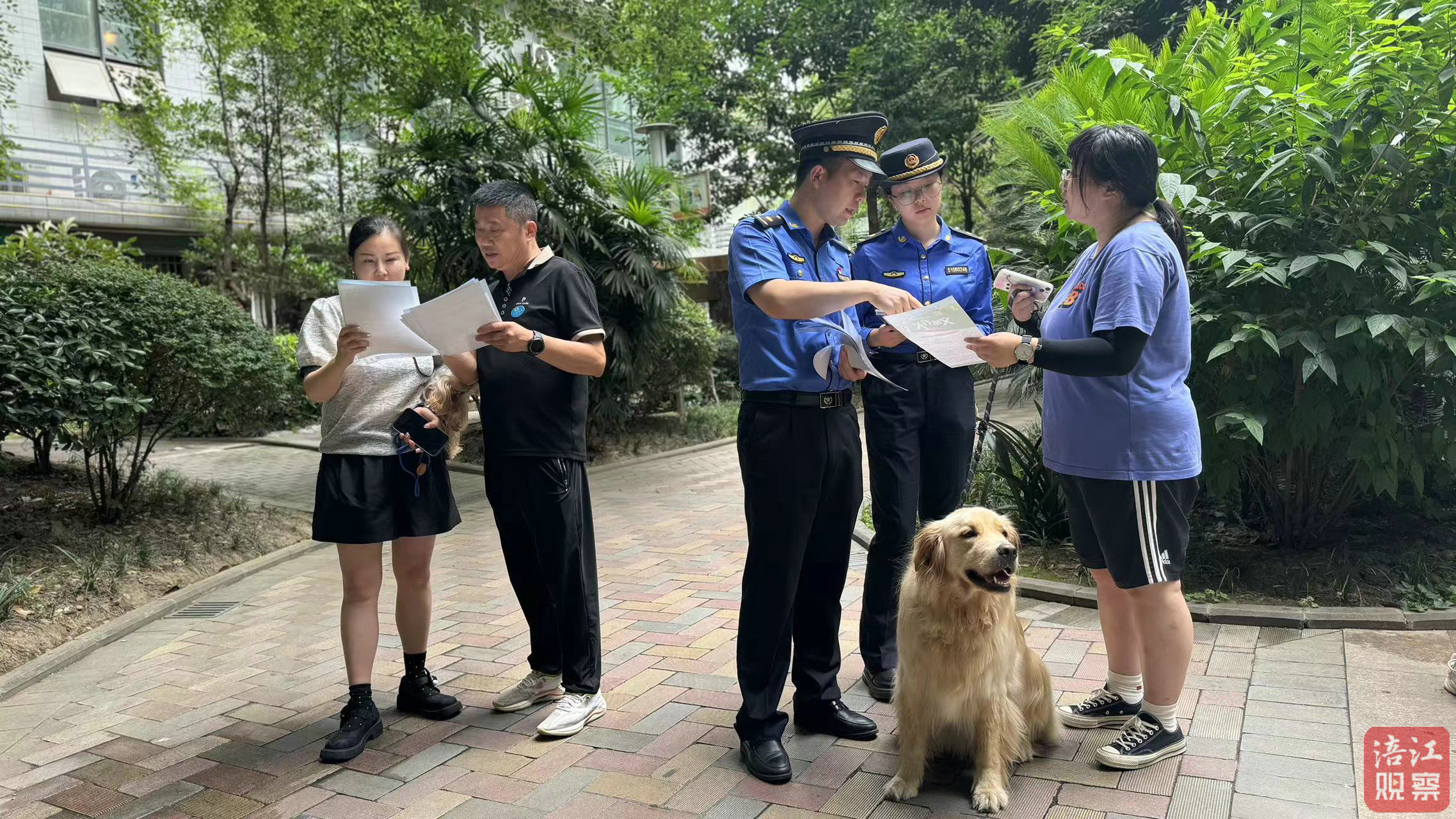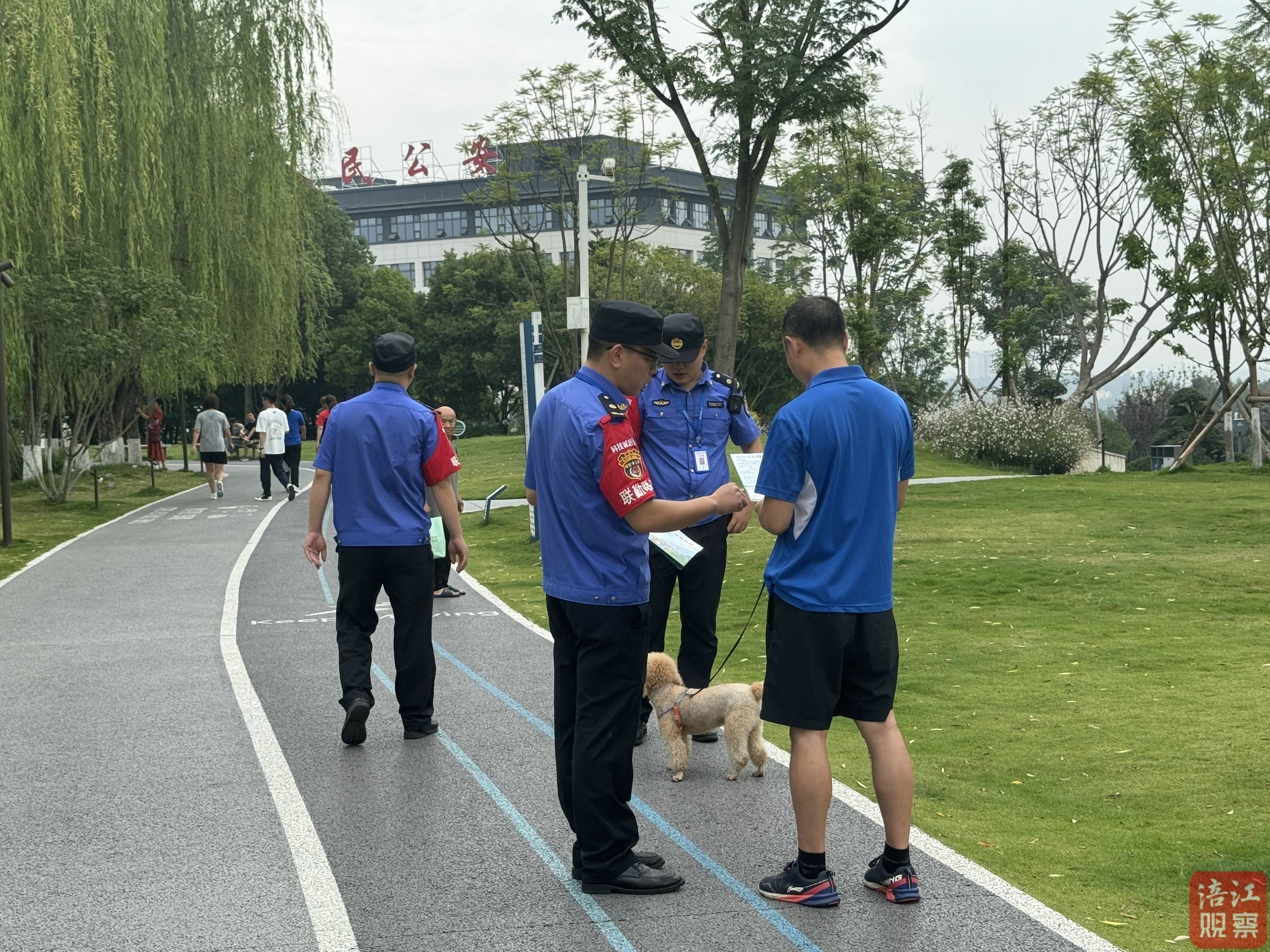 6月20日上午,倍特景苑小區(qū)居民陳先生牽著愛犬在人工湖散步時發(fā)現(xiàn),最近每天都有由科技城新區(qū)城管執(zhí)法隊員和警察組成的聯(lián)合執(zhí)法組,來此給市民宣傳文明養(yǎng)犬政策。