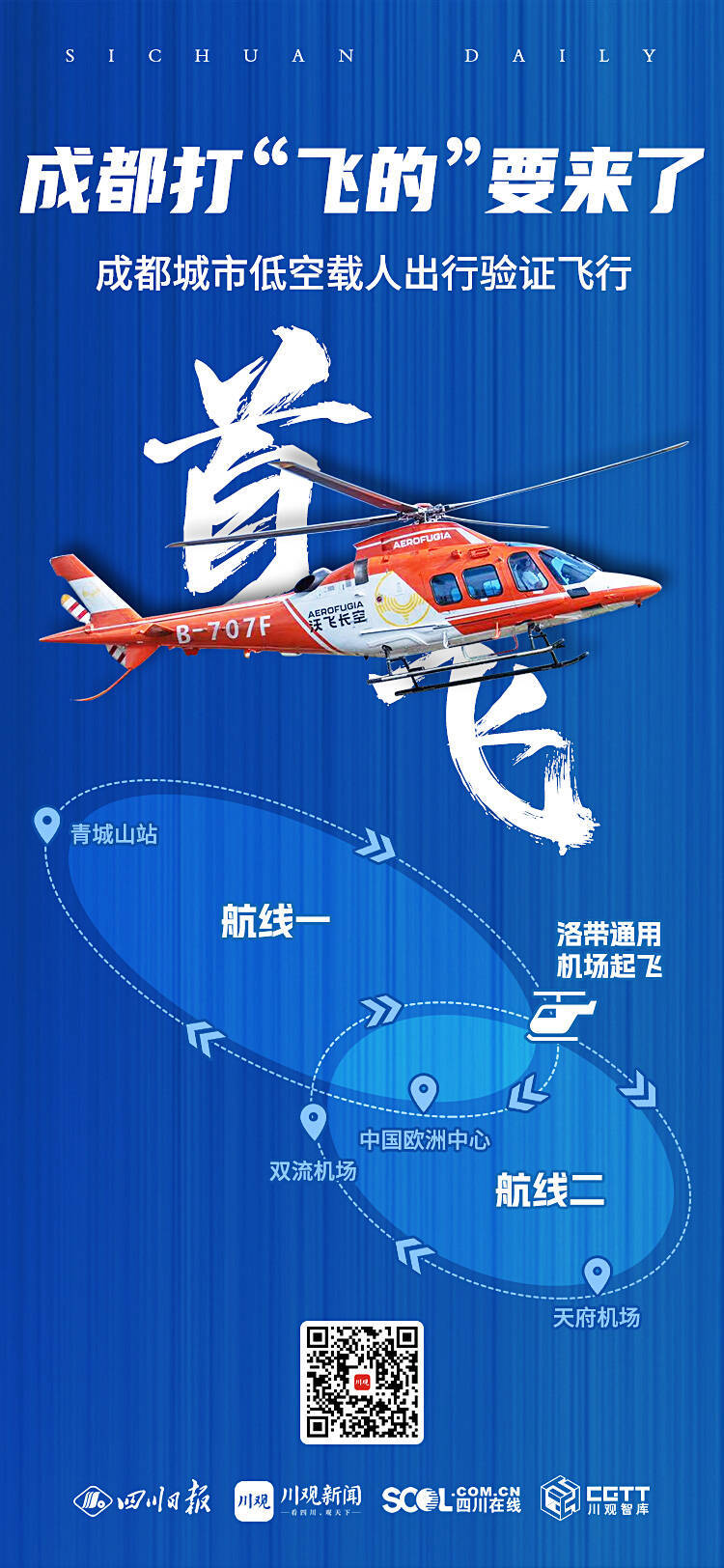 當(dāng)日下午,這架飛機(jī)再次轉(zhuǎn)動(dòng)旋翼,從洛帶通用機(jī)場(chǎng)起飛,經(jīng)停天府國(guó)際機(jī)場(chǎng)、雙流國(guó)際機(jī)場(chǎng)后順利返航。