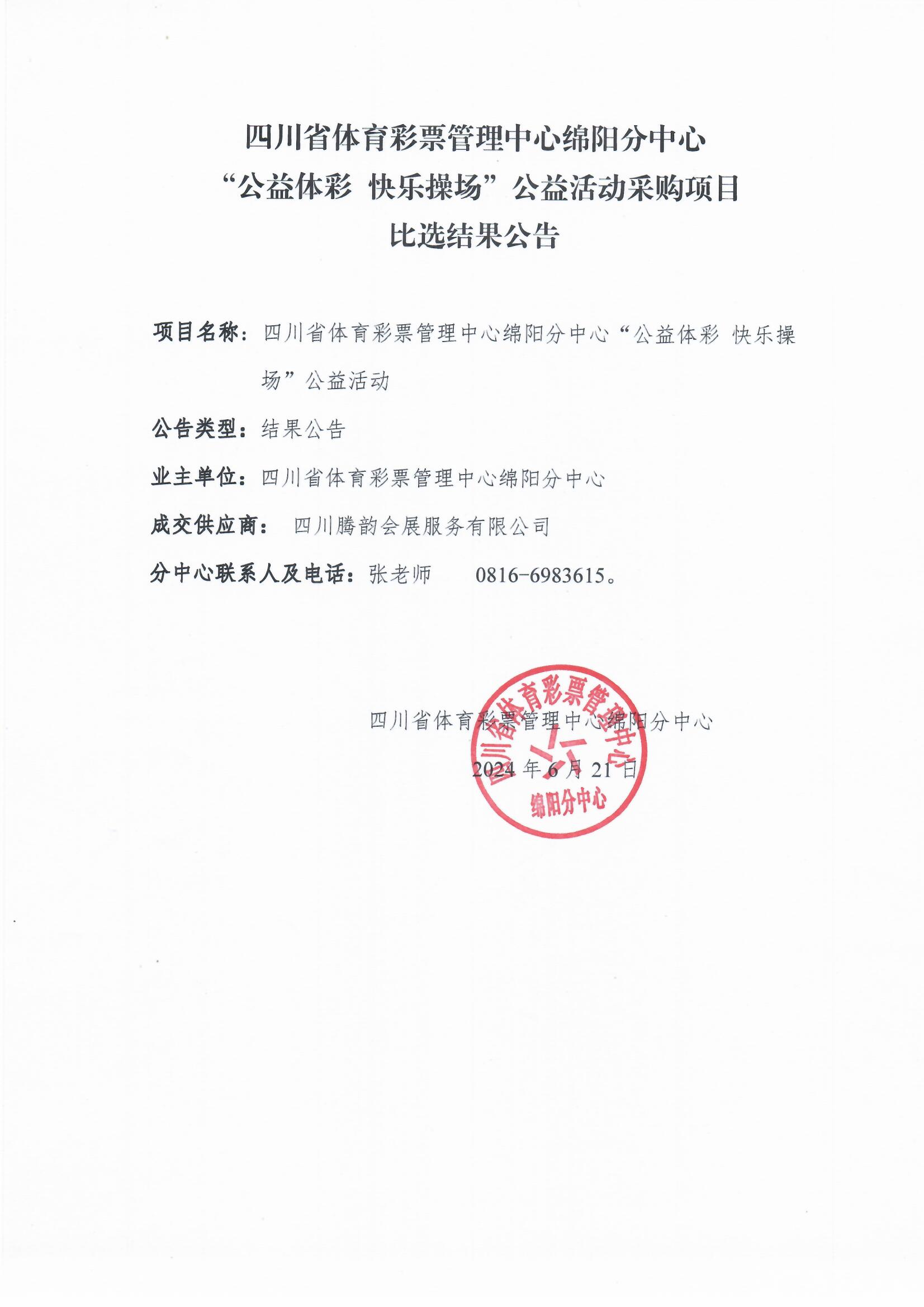 四川省體育彩票管理中心綿陽分中心“公益體彩快樂操場(chǎng)”公益活動(dòng)采購項(xiàng)目比選結(jié)果公告