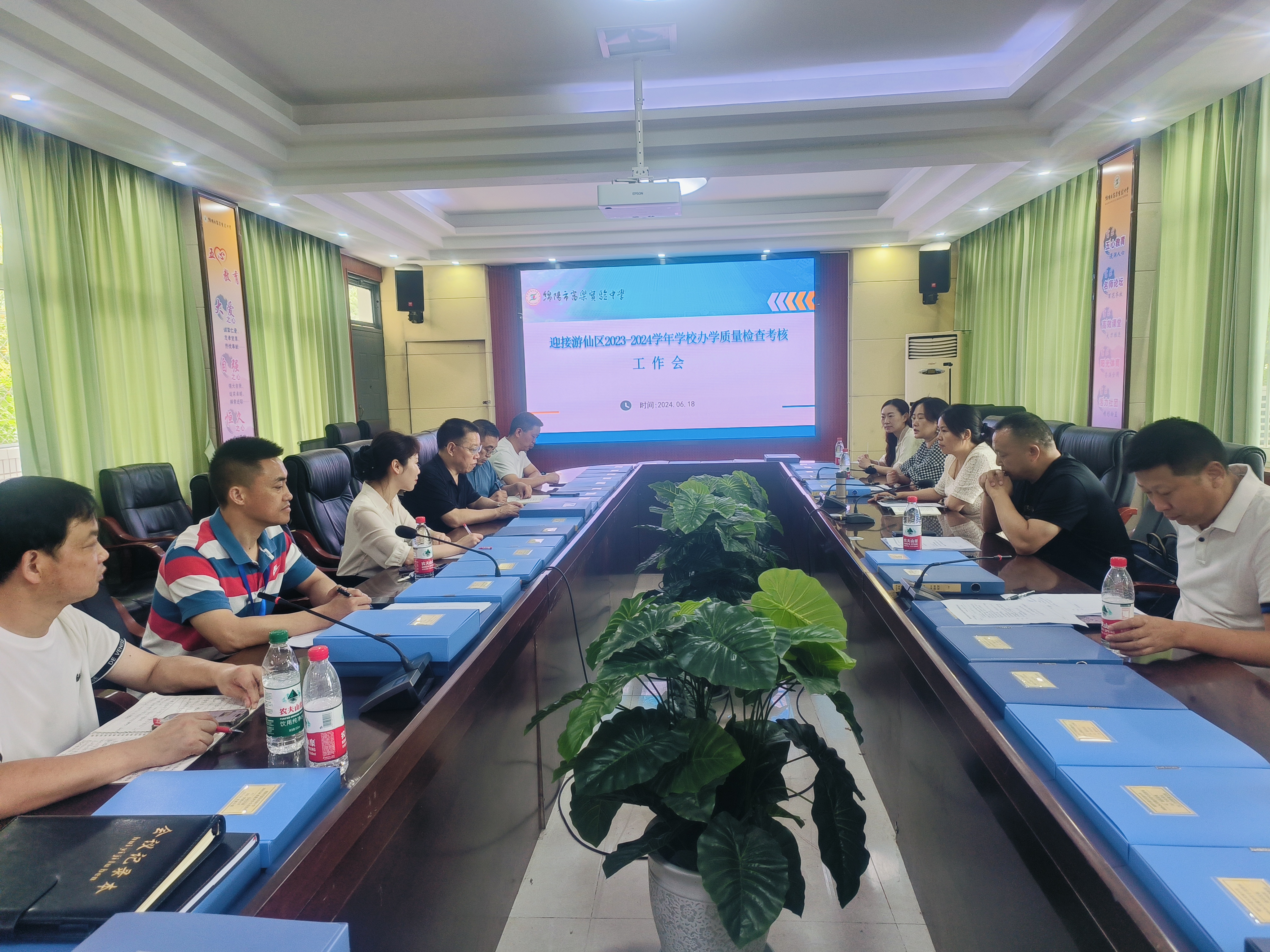 6月18日上午,綿陽市富樂中學(xué)迎接游仙區(qū)2023-2024學(xué)年學(xué)校辦學(xué)質(zhì)量檢查考核工作圓滿結(jié)束。區(qū)教體局安全股股長何天強,區(qū)教體系統(tǒng)團委書記、少先隊總輔導(dǎo)員陳綺宇,區(qū)進修校副校長賈福明,區(qū)進修校中教室主任孫曉歐等一行,對富樂中學(xué)的辦學(xué)質(zhì)量進行了全面的現(xiàn)場評估。富樂中學(xué)黨委副書記、校長胥艷,黨委副書記岳文和各部門負責人參加迎檢工作。