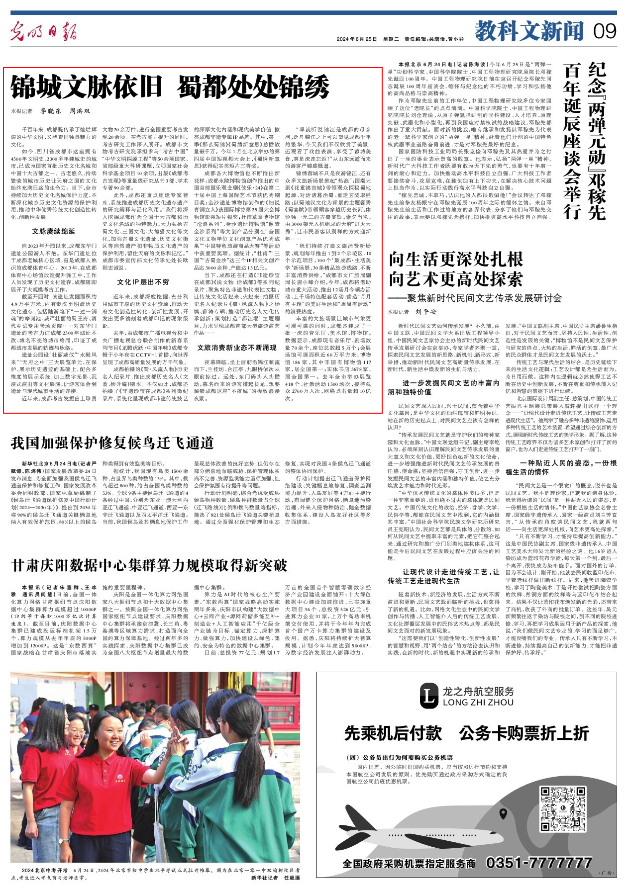 6月25日出版的《光明日?qǐng)?bào)》在9版刊發(fā)題為《錦城文脈依舊 蜀都處處錦繡》的報(bào)道,聚焦四川省成都市持續(xù)加大歷史文化名城保護(hù)力度,不斷深化城鄉(xiāng)歷史文化資源的保護(hù)利用,推動(dòng)中華優(yōu)秀傳統(tǒng)文化創(chuàng)造性轉(zhuǎn)化、創(chuàng)新性發(fā)展。