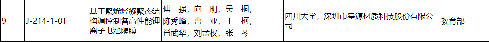 四川大學(xué)、深圳市星源材質(zhì)科技股份有限公司——基于聚烯烴凝聚態(tài)結(jié)構(gòu)調(diào)控制備高性能鋰離子電池隔膜項目,獲得2023年度國家科技進(jìn)步獎一等獎;