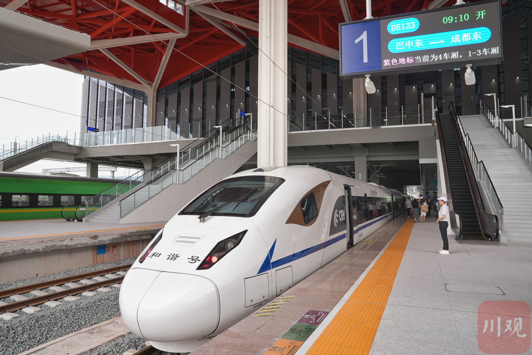 這是新建漢中至巴中至南充鐵路巴中至南充段(以下簡稱“巴南高鐵”)開出的首發(fā)車。從這天起,這條穿越了川陜革命根據(jù)地的“紅色高鐵”正式開通運營,革命老區(qū)巴中、南充境內(nèi)的多個區(qū)縣首通高鐵,與成都、重慶的鐵路時空距離拉近到2小時。