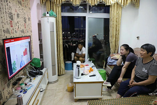 圖為居民在家中觀看庭審。重慶市高級(jí)人民法院供圖。