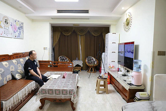 圖為當(dāng)事人彭某在家中參加庭審。重慶市高級(jí)人民法院供圖。