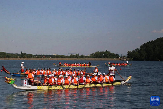 6月29日,人們在保加利亞索非亞舉行的龍舟文化節(jié)上參加賽龍舟活動。