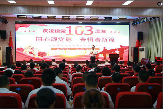 綿陽(yáng)新聞網(wǎng)訊 為了慶祝中國(guó)共產(chǎn)黨建黨103周年,弘揚(yáng)黨的光輝歷程,傳承紅色基因,6月26日,綿陽(yáng)市富樂(lè)實(shí)驗(yàn)中學(xué)黨委在沈家壩校區(qū)學(xué)術(shù)廳舉行了以“同心頌黨恩,奮楫譜新篇”為主題的慶“七一”系列活動(dòng),政教處副主任沈青術(shù)主持活動(dòng)。