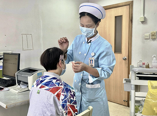 在醫(yī)院血液透析名醫(yī)護(hù)士團(tuán)隊(duì)工作室,黃雪芳耳穴護(hù)理深受歡迎