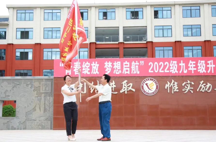 儀式上,校長胥艷發(fā)表了熱情洋溢的講話,為全體師生帶來了振奮人心的力量;優(yōu)秀教師代表與學(xué)生代表上臺分享他們的感悟與期望,為儀式增添了濃厚的奮斗與青春氣息。該校黨委書記廖聰壽親臨現(xiàn)場,向年級組負(fù)責(zé)人莊重授旗,將新的責(zé)任與使命傳遞給2022級全體師生。
