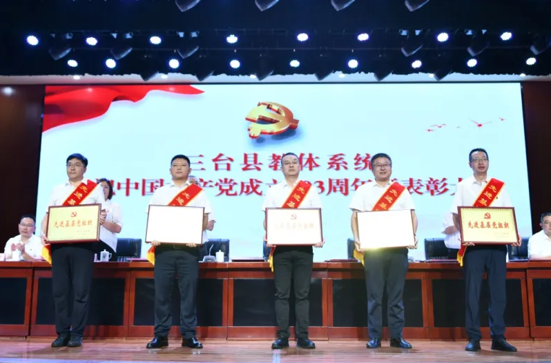 在“三臺(tái)縣教體系統(tǒng)慶祝中國(guó)共產(chǎn)黨成立103周年暨表彰大會(huì)”上,中共三臺(tái)縣第一中學(xué)委員會(huì)被縣委表彰為“先進(jìn)基層黨組織”,第二黨支部黨支部書(shū)記曾磊被縣委教育工委評(píng)為“優(yōu)秀黨務(wù)工作者”。