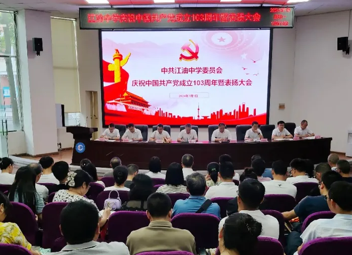 綿陽(yáng)新聞網(wǎng)訊 為了慶祝中國(guó)共產(chǎn)黨成立103周年,表彰激勵(lì)先進(jìn),再鼓奮斗干勁,推進(jìn)學(xué)校發(fā)展,7月1日下午,中共江油中學(xué)委員會(huì)在學(xué)校第一學(xué)術(shù)廳召開(kāi)了慶祝中國(guó)共產(chǎn)黨成立103周年暨表?yè)P(yáng)大會(huì),該校黨委委員、全體黨員同志、入黨積極分子及發(fā)展對(duì)象齊聚一堂,回顧黨的光輝歷史,謳歌黨的豐功偉績(jī),慶祝黨的103歲生日。會(huì)議由黨委副書(shū)記、校長(zhǎng)段懷金主持。
