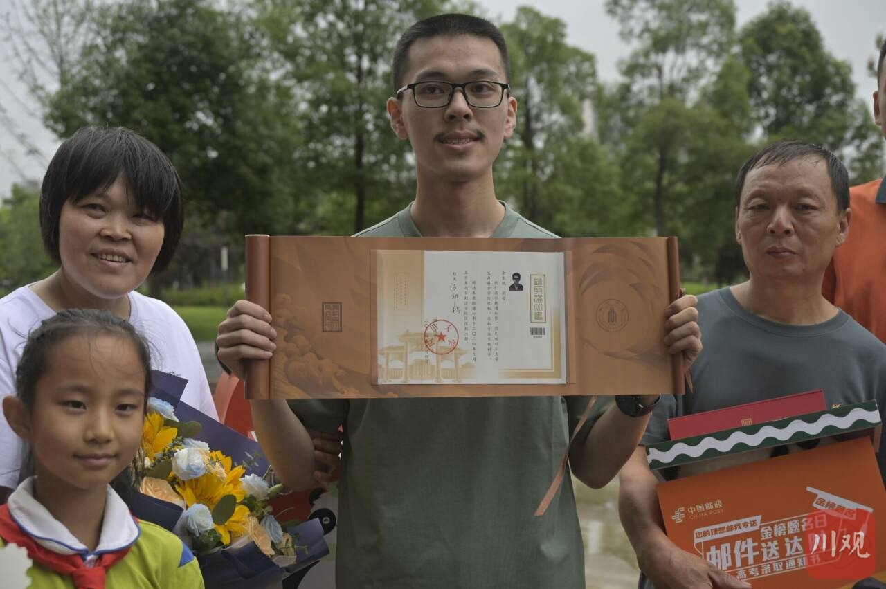 7月8日10點(diǎn)10分左右,記者跟隨郵政車(chē)輛來(lái)到成都市雙流區(qū)的一個(gè)居民小區(qū)門(mén)口,見(jiàn)到了接收全省第一封高考錄取通知書(shū)的考生余東銳同學(xué)。
